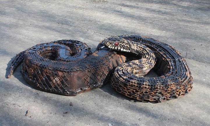 Hurda Metallerden Hayvan Heykelleri – Geri Dönüşüm Projeleri. Gallerli sanatçı John Brown’ın hurdaya dönmüş metalleri kullanarak tasarladığı kuş, kelebek, yılan, kurbağa, böcek gibi hayvan heykelleri gerçeğe çok yakın detayları ve doğanın içinde çekilen fotoğraflarıyla her an hareket edecekmiş gibi görünüyorlar.